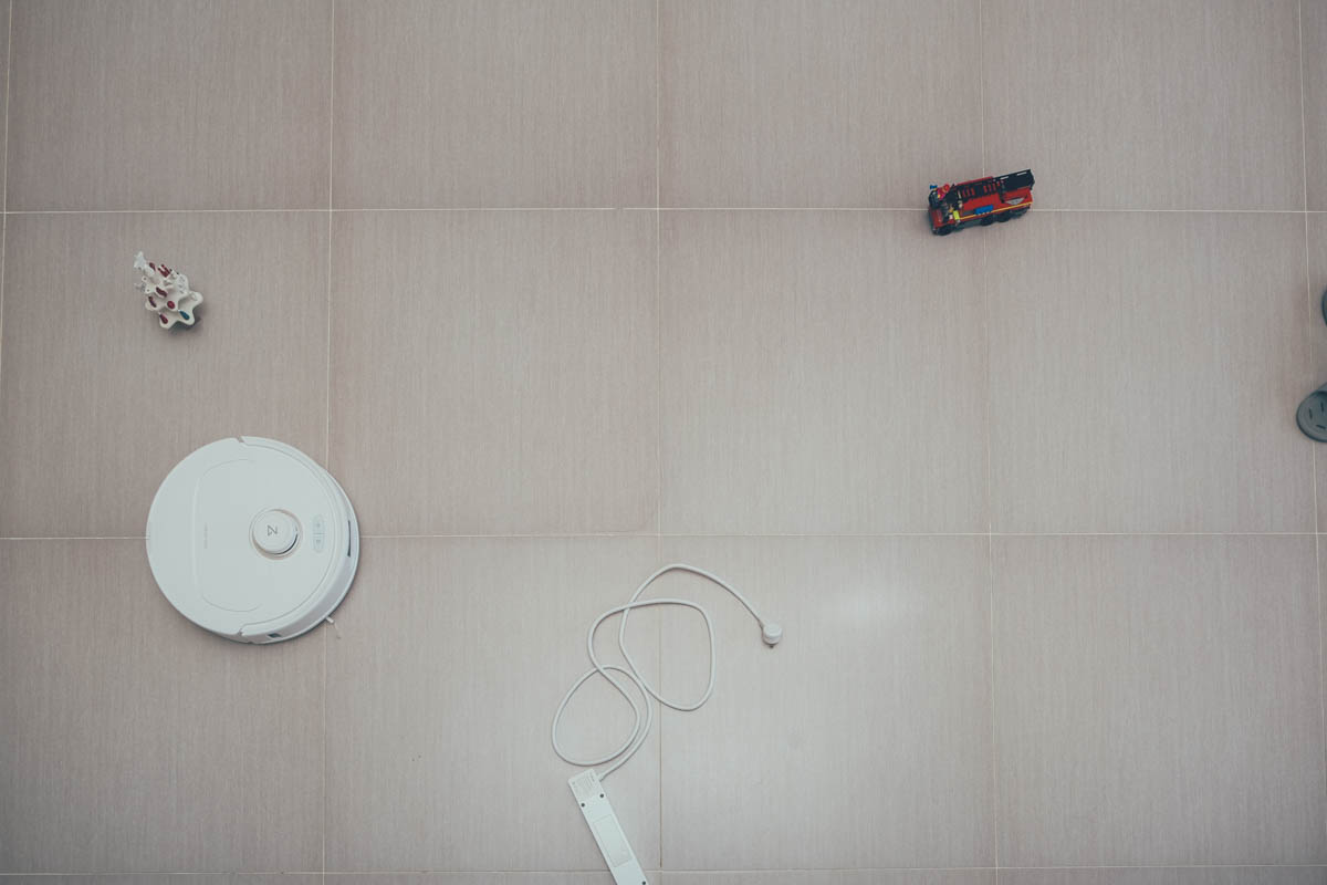 我自己隨意的放了幾樣東西,包括拖鞋、玩具、延長線,其實類似的實驗我已經做了非常多次,已經不太需要懷疑它的避障能力,假設測試十次好了,我也會誠實的告訴大家,十次大約 8 次都會完美不碰撞,可能會有 1~2 次碰到,但是非常輕的碰到,目前也應該沒有半台是真正可以 100% 無碰撞的避開所有障礙物,就現況來說避障率也至少 99% 以上是不會直接硬撞上去的。