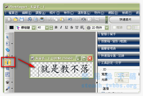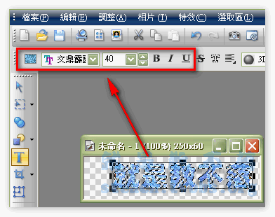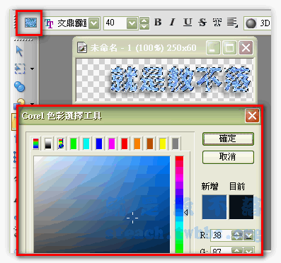 再來就是要選一個漂亮的字型跟顏色及大小,站長這個示範是用文鼎霹靂體