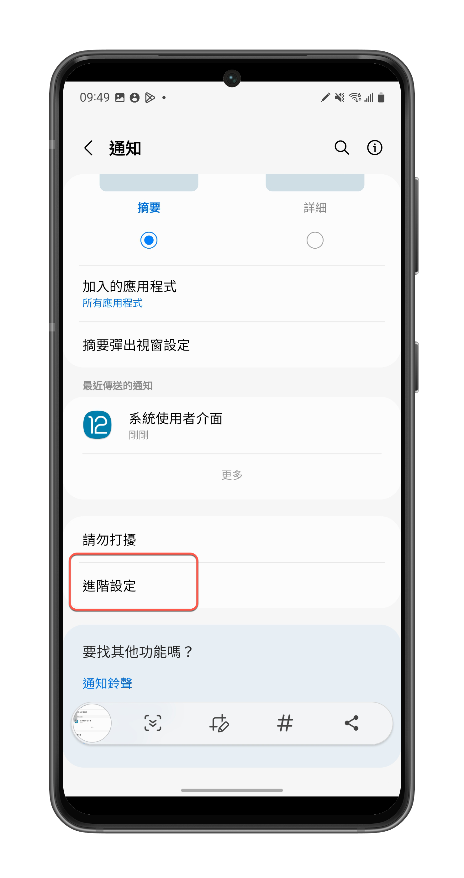 Android 手機跟 iPhone 大同小異,但多了一點點步驟,同樣的打開「設定」>「通知」。
