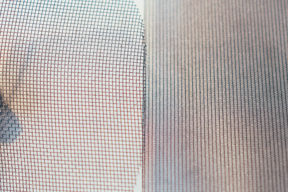 在講分別之前先給大家看一下,實體看到一般紗窗跟防霾紗窗,肉眼直接就有莫大的差異,下圖左邊就是一般的紗窗,右邊為防霾紗窗,可以注意到光是紗網的密度就差很多,所以其實傳統的紗窗大致上就是只能擋住蚊蟲或比較大的灰塵而已,如果外面空氣不好時,氣密窗要直接關上才能阻擋 PM2.5 等空氣污染物。