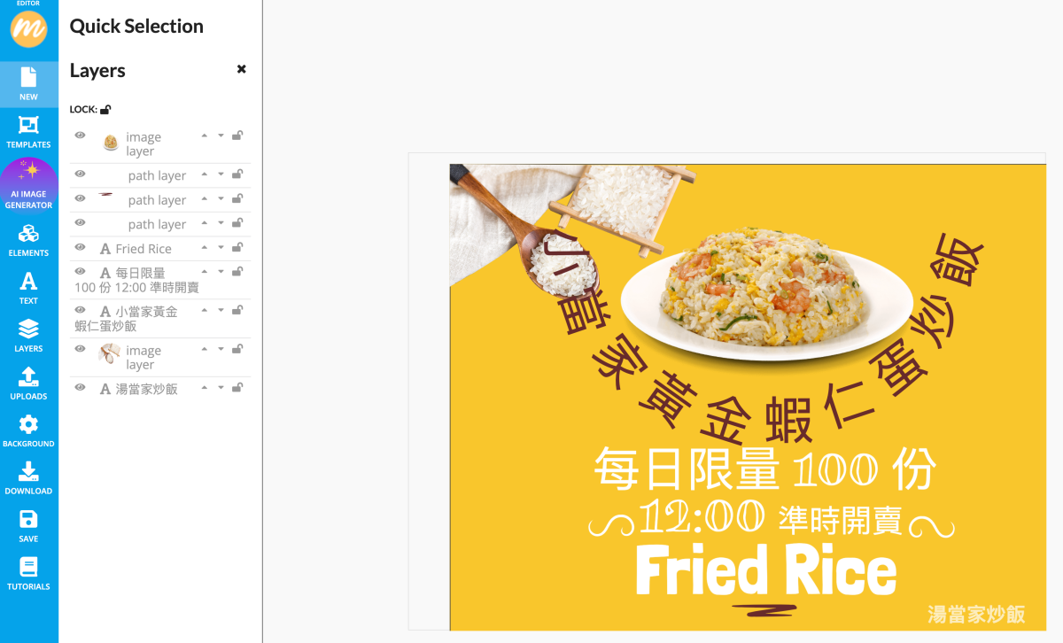 我把圖片取代後,文字也修改一下,就變成了一個還算不錯的圖片了,MockoFUN 唯一的小缺點是,沒有中文字型,所以看起來會稍嫌呆板一點,但總比自己完全不會設計都來的強,再不然就是付費請專業的來了。