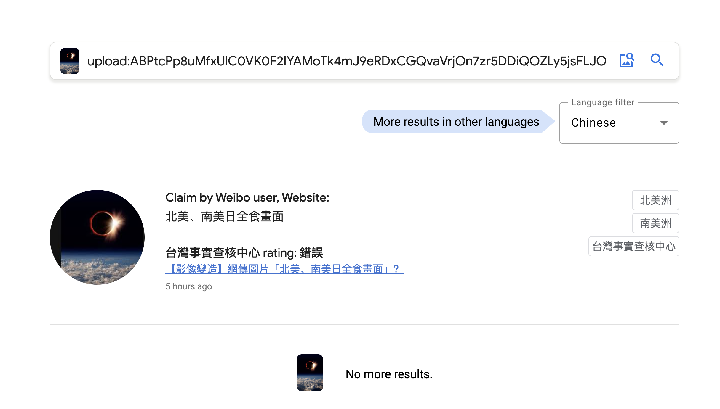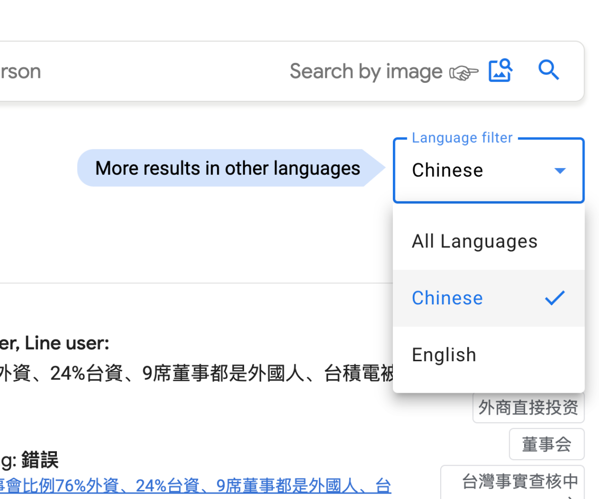 簡單試搜一下,會像這樣,直接顯示這是錯誤還是正確,點撃後也會前往查核的來源。以中文的內容來說,目前都是來自