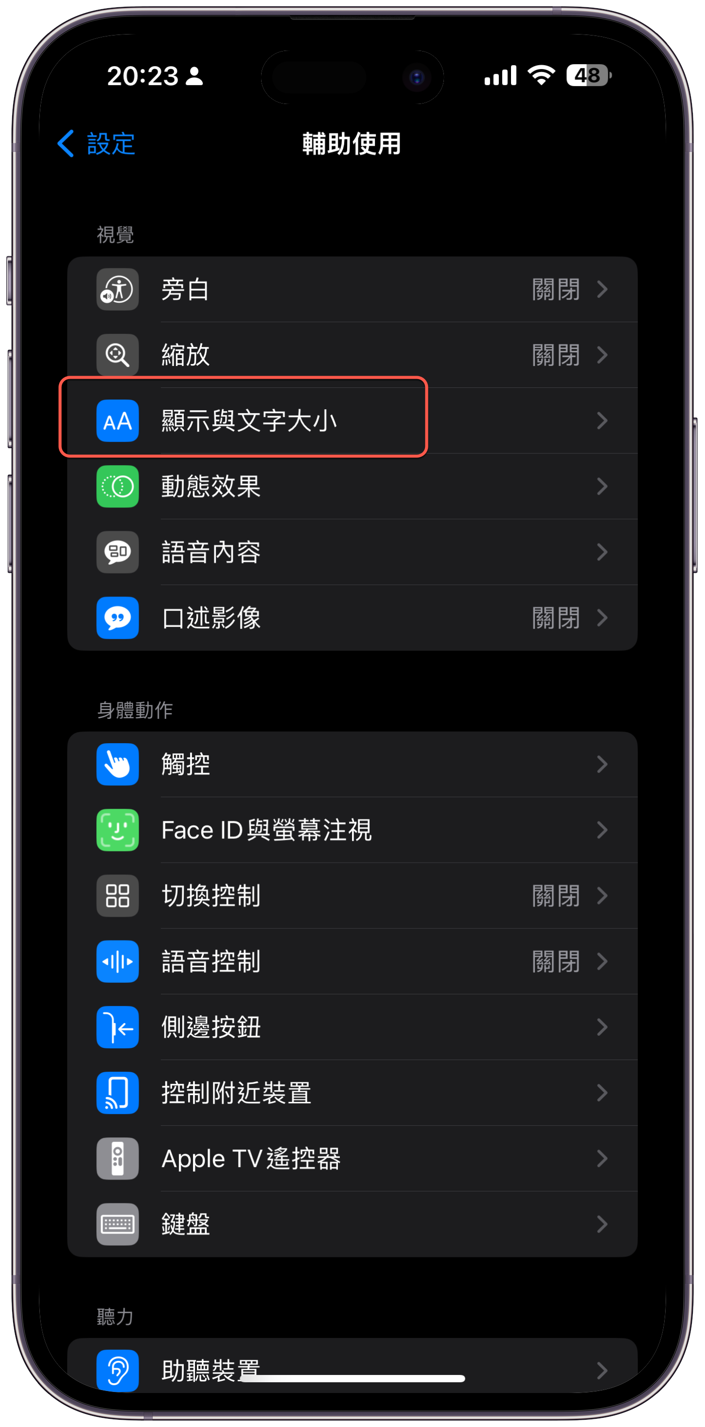 進入「顯示與文字大小」。