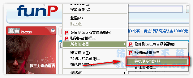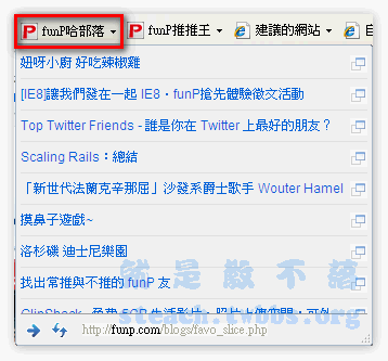 什麼!!在看完站長一連串的介紹後,你還沒裝IE8,那還不快點去裝,不然怎麼充滿著濃濃的Funp味,往後看到了什麼好的文章就趕右鍵點一點,隨時也不要忘記看看麻吉和哈部落的動向,才不會趕不上潮流,趕緊讓你的IE8和FUNP也蹦出愛的火花吧!