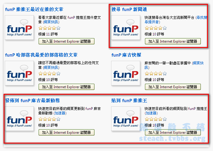 此時聞到一陣Funp的味道飄了過來,不過別急,這六個可是三種不同類型的小工具哦,右上小框框的新聞通,也就是Funp新聞通的搜尋工具列,最下面的大紅框,就是用來右鍵立即貼和立即發的右鍵加速器,剩下的3個,就是讓你把最重要的3個連結加入我的最愛列,不過也不用考慮啦,就是給他全部再次用力的點下去或是到咱們貼心的Funp也有準備好哦:由此去