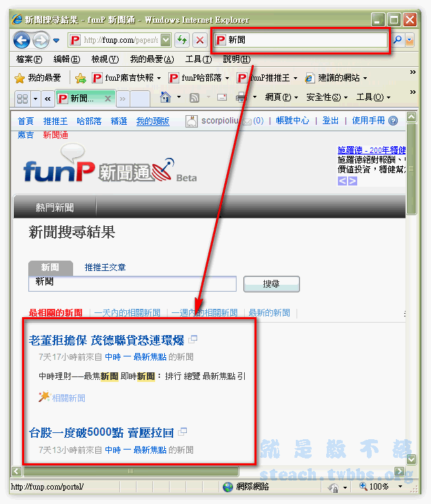 六大功能如下: 相容性檢視:介紹點我去 Inprivate:介紹點我去 加速器:介紹點我去 Web Slices:介紹點我去 SmartScreen:介紹點我去 搜尋建議:介紹點我去去哪下載新的IE8? 站長在3/20的前一週就已經昭告天下人IE8的消息,更是在3/20當天發佈了IE8.0繁體中文正式版今日開跑,去哪下載&如何隨點隨FunP?讓大家都能在第一時間內享用到IE8的不一樣和在IE8中使用貼心的Funp功能,所以如果還沒安裝的,趕緊至上面文章中上課一下哦!或者到咱們貼心的Funp也準備好了準備的連結哦:由此去 讓IE8充滿濃濃Funp味! 怎麼才是濃濃的Funp味呢?首先當然是要在工具列充滿著Funp的連結,讓我們隨時想到手指一動馬上連到Funp來每天也不忘關心國家大事、娛樂影視、體壇風雲,用貼心的新聞通搜尋,想看什麼新聞通通有。