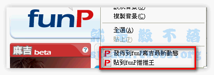 想當然爾,咱們Funp最著名之一的就是收集了全天下大大小小的好文章,每當看到什麼超級好文就會趕緊的貼貼貼,但是如果沒有Funp貼貼的文章怎麼辦,這時只要右個鍵就有貼心的貼到Funp推推王啦,貼貼的同時還可以利用發佈到Funp麻吉最新動態將好文章同步發佈給你散佈天下的好麻吉,讓大家也能在第一時間知道你在看什麼好文章,是不是整個讓你覺得很貼心又方便要怎麼樣才能跟站長一樣充滿著濃濃的Funp味呢,趕緊往下看吧!