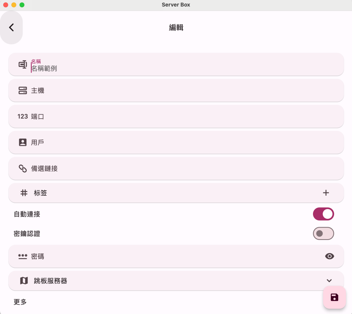 然後輸入相關資訊,除了透過密碼外也支援金鑰登入。