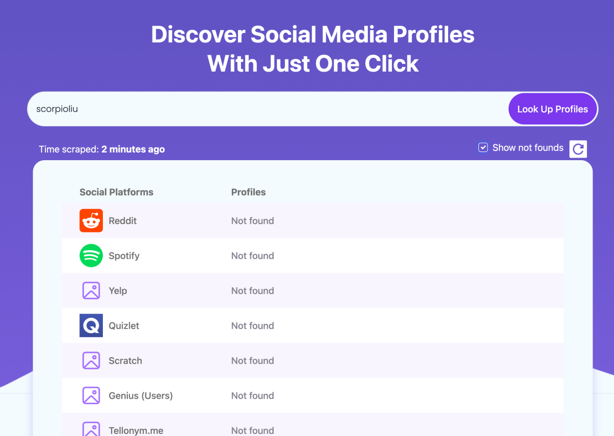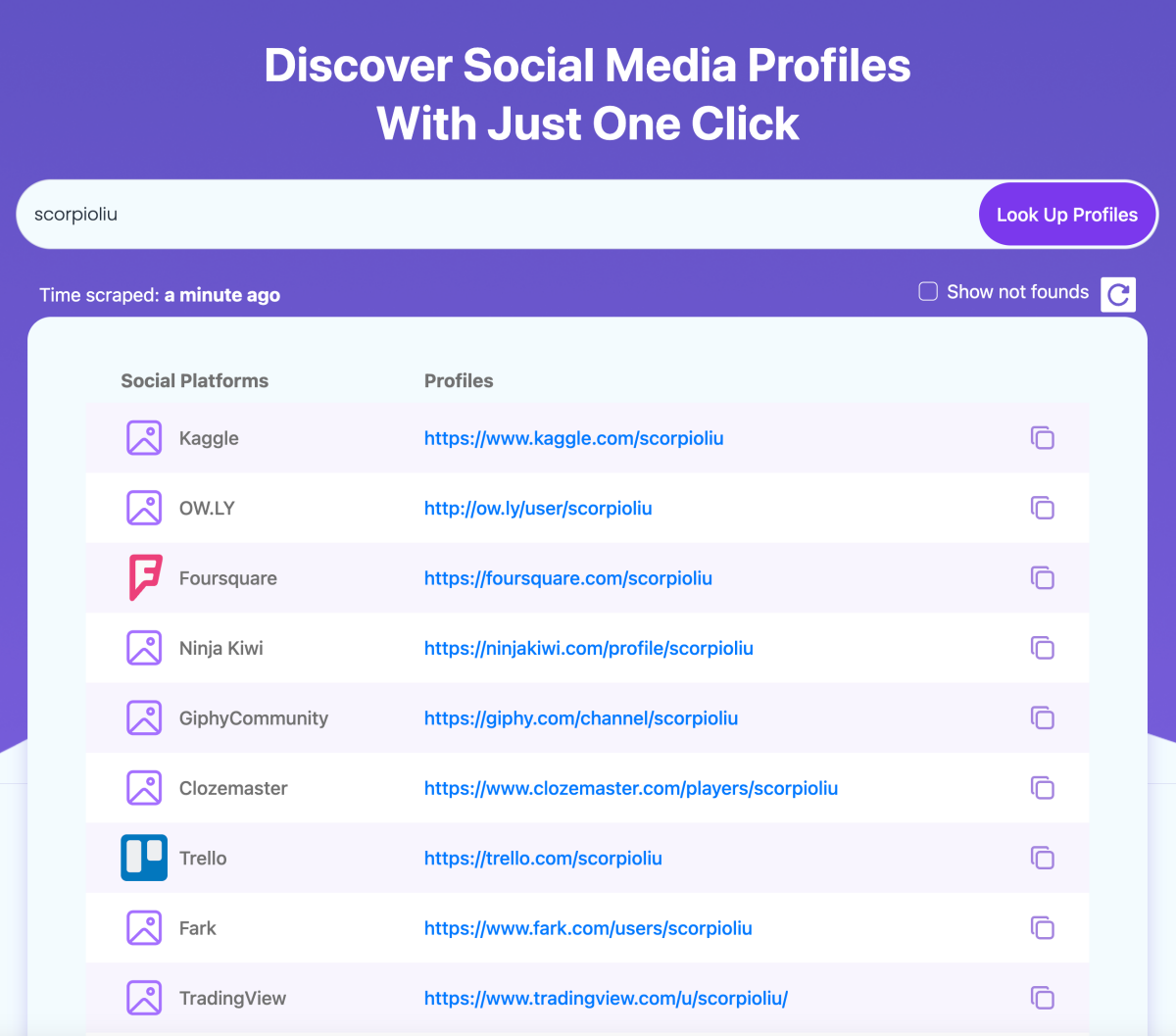Profile Discover - 用帳號名稱反查超過 400 個社群網站