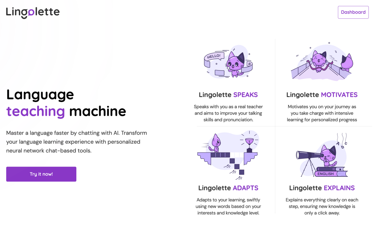 學習語言這件事,一直以來都有著各種方法,不論是實體課程、線上一對一、自己靠書本自學或是像現在有 App 的輔助等,不論哪個方法,只要適合自己學習的習慣都是好方法,而這二年因為 AI 的關係,漸漸的也有很多「與 AI 練習」的語言學習服務,不過大多都是要付費的,今天來分享 Lingolette 這個語言學習服務,免費,而且功能頗完整,學習過程想要快速查單字,練習發音或對話都沒問題。
