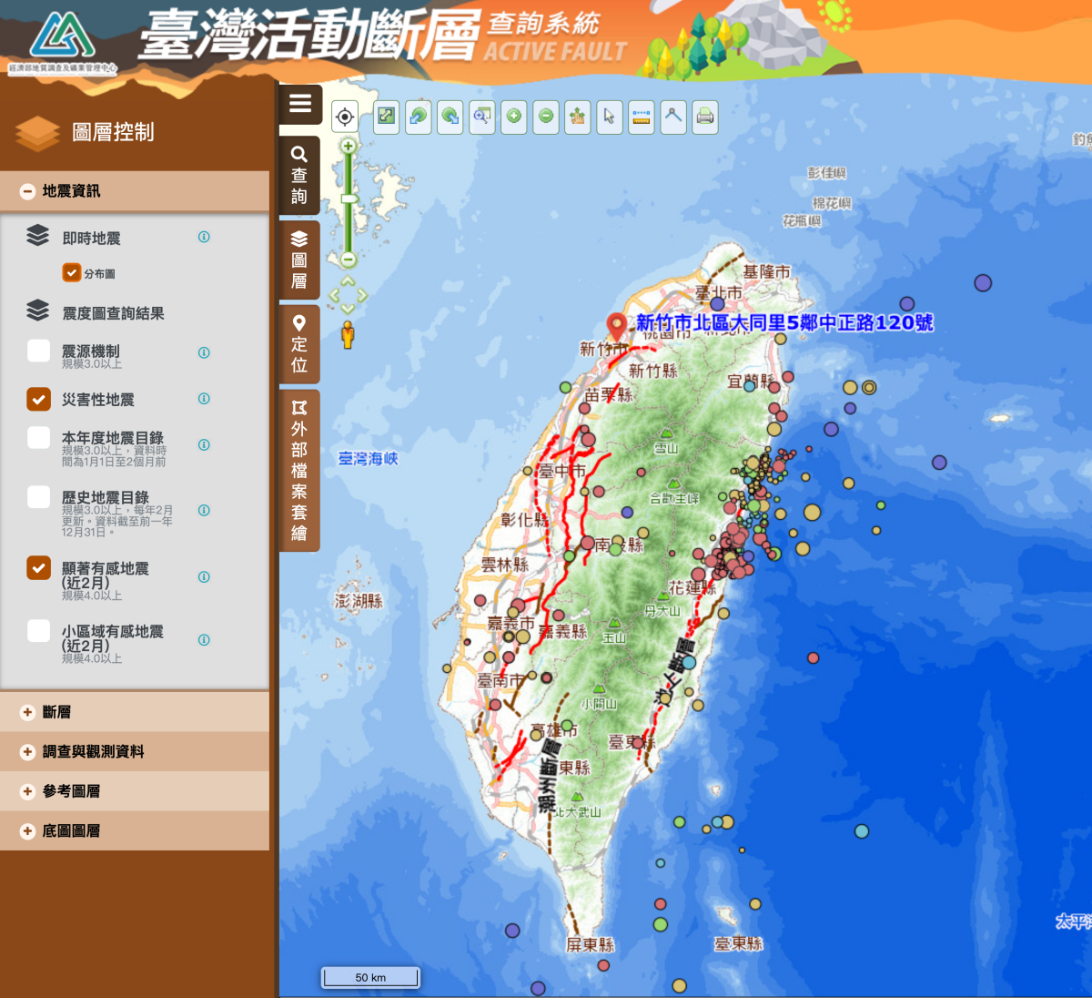 網站:https://faultgis.gsmma.gov.tw/gis/
