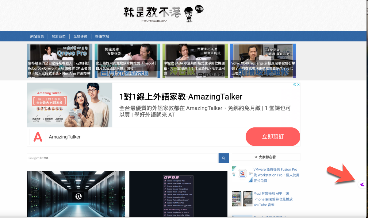 接下來你在上網時,右下角都會出現 TinaMind 的圖示,隨時點撃就能呼喚 TinaMind 的頁面出來。