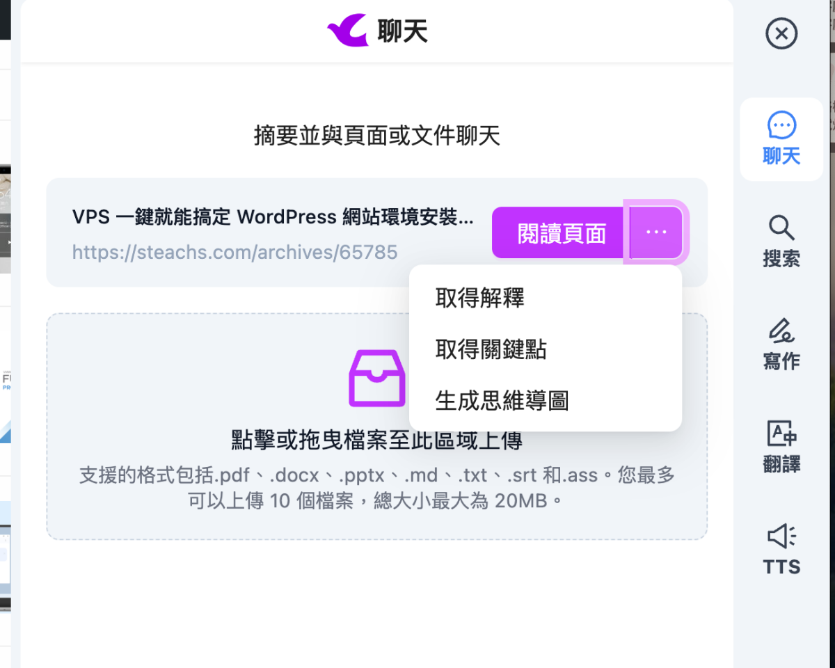 摘要就像這樣,其實有助於我們快速吸收內容,你也可以透過對話和它交流內容。