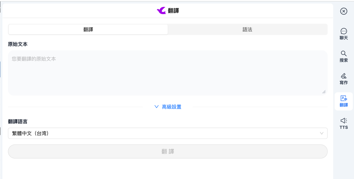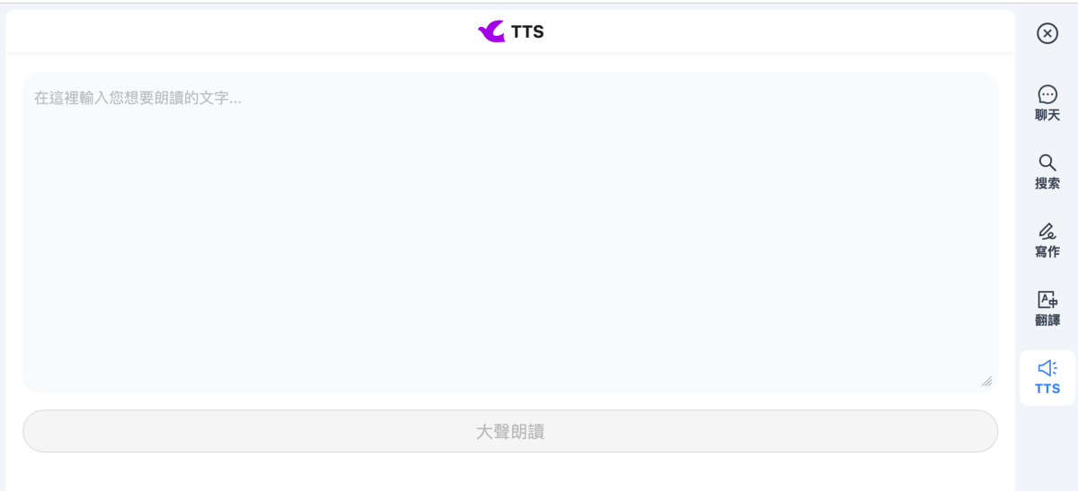 登入後右邊就有聊天、搜索、寫作、翻譯跟 TTS 的功能可以使用,而大家透過 AI 助理最常用到的功能差不多就這些了,如果有一些專業圖表或是相關的需求的話,那麼可能還是要用訂閱版的 ChatGPT 搭配對應的外掛來使用。