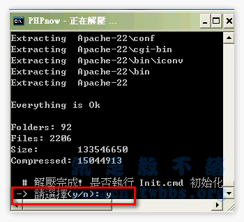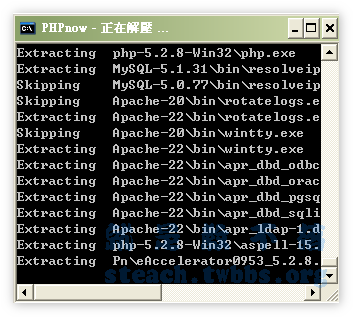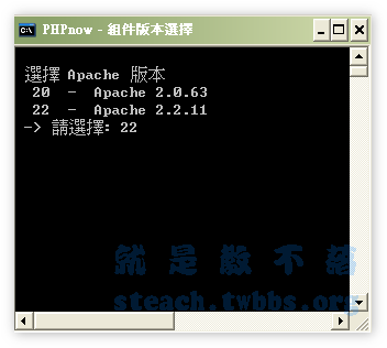 下載解壓後,執行〝Setup〞,依照出現的對話框選擇你的需求,例如Apache版本2.2.11就輸入22按下Enter