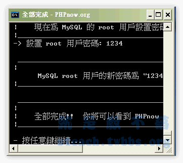 全部都設立完畢後,按任意鍵視窗就會關掉並跳至建置環境內容