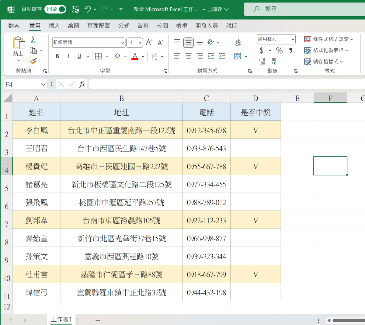 首先,來舉個簡單的例子,當我們有一個表格資料時,比如下面的例子是將中獎的勾選標示出來。