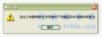 按送出後會出現提醒視窗,按下確定後等待他轉頁