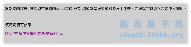 接下來一樣依照各欄填寫,第一欄即為你要的中文網址