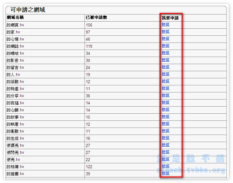 總共可以申請10個網域名稱,點擊〝申請新的網址〞