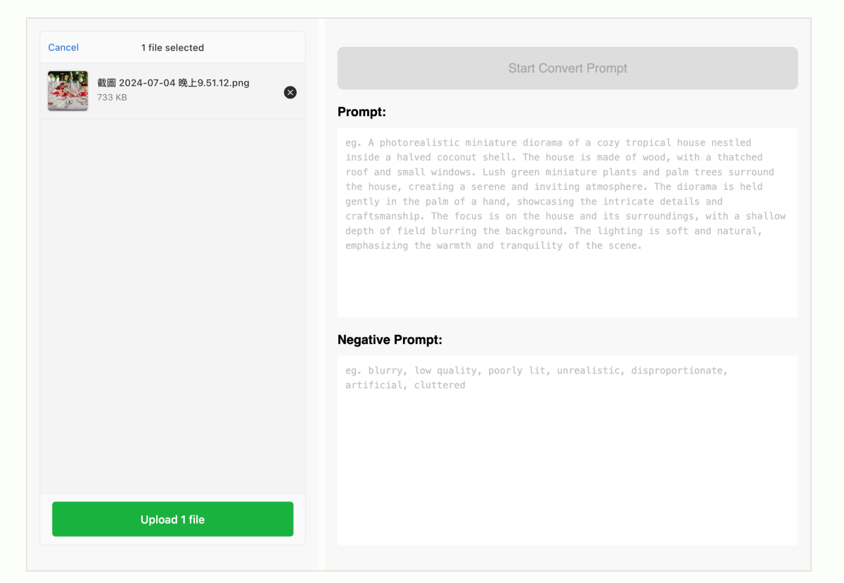 確定好圖片後點擊「Start Convert Prompt」。