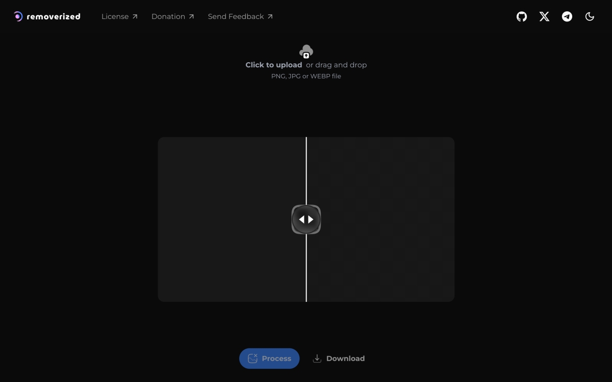 網站:https://removerized.tech/進入網站後,直接拖曳圖片到上方的 Click to upload,或是點擊後再去選擇檔案都可以。