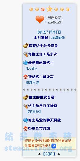 第3個圈圈則是紀錄著你和其它格主的一些友好關係囉!這樣就很清楚了