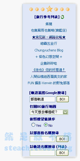 比如站長在〝打開Bo旅行地圖〞選了最受人愛戴的部落格就像右圖一樣,會將軌道前幾名人氣的部落格顯示出來,直接點選就可以過去囉