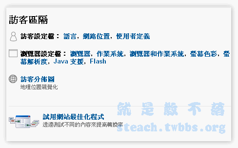 而這個訪客區隔裡,可以知道你的粉絲分佈在世界各地的哪兒,說的是什麼火星文或是用著什麼軟體及電腦基本備份等等..每一細項點擊進去後都會有詳盡的數據哦!