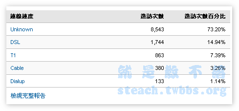 在技術設定檔中呈現的數據是訪客的瀏覽器及網路連線速度,這樣的數據影響著你的網站應該修改的部份。