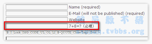 就像圖上一樣,這可不是外掛哦,而是自己手動加入一個簡單的算式來達成留言驗證碼的功能,對於一般的留言機器人都可以擋下來,除非你遇到高級機器人可能就失效了,不過也是極少數啦~