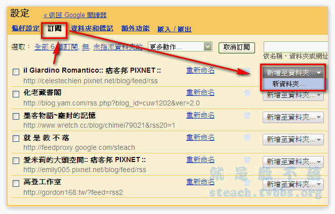 點擊〝訂閱〞,先在隨便一個部落格的後面新增一個資料夾