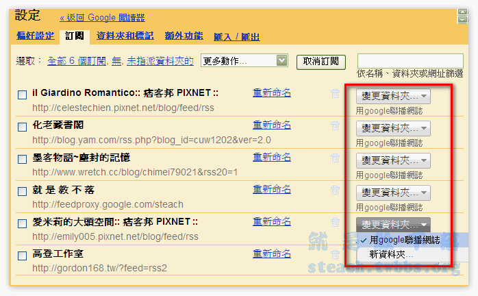 新增完資料夾後,再一一的把要聯播的部落格通通加到這個資料夾