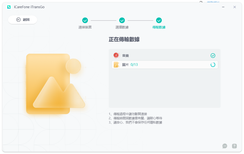 使用 iCareFone iTransGo 進行資料轉移時,資料不會遺失。這款工具保證所有資料,包括聯絡人、照片、影片、應用數據等,能夠完整無損地從安卓轉 ios。只要按照步驟操作,所有資料都會被安全地搬到新設備上,無需擔心遺失。