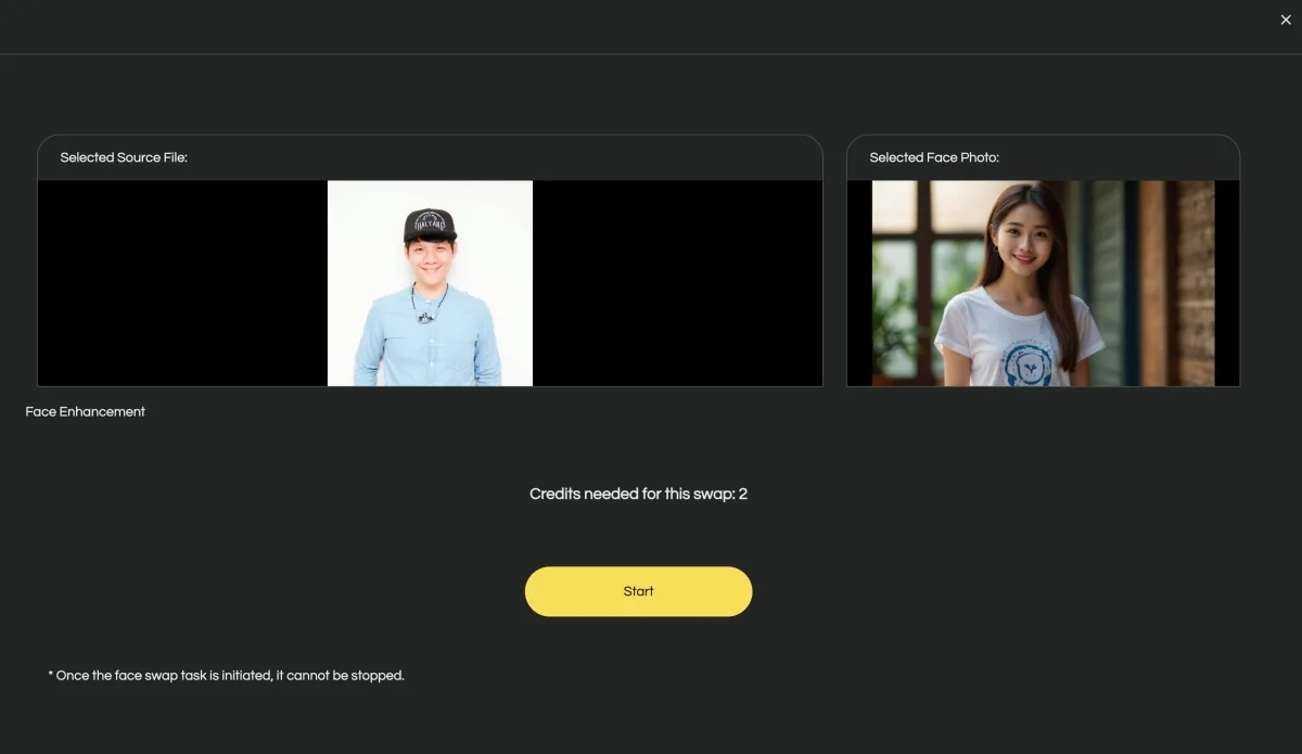 首先,這個服務並不是免費的,不過只要註冊就有 60 點數可以用,可以使用一分鐘的影片或是 30 張照片,以試用來說也夠用了,點擊 Free FaceSwap 開始。