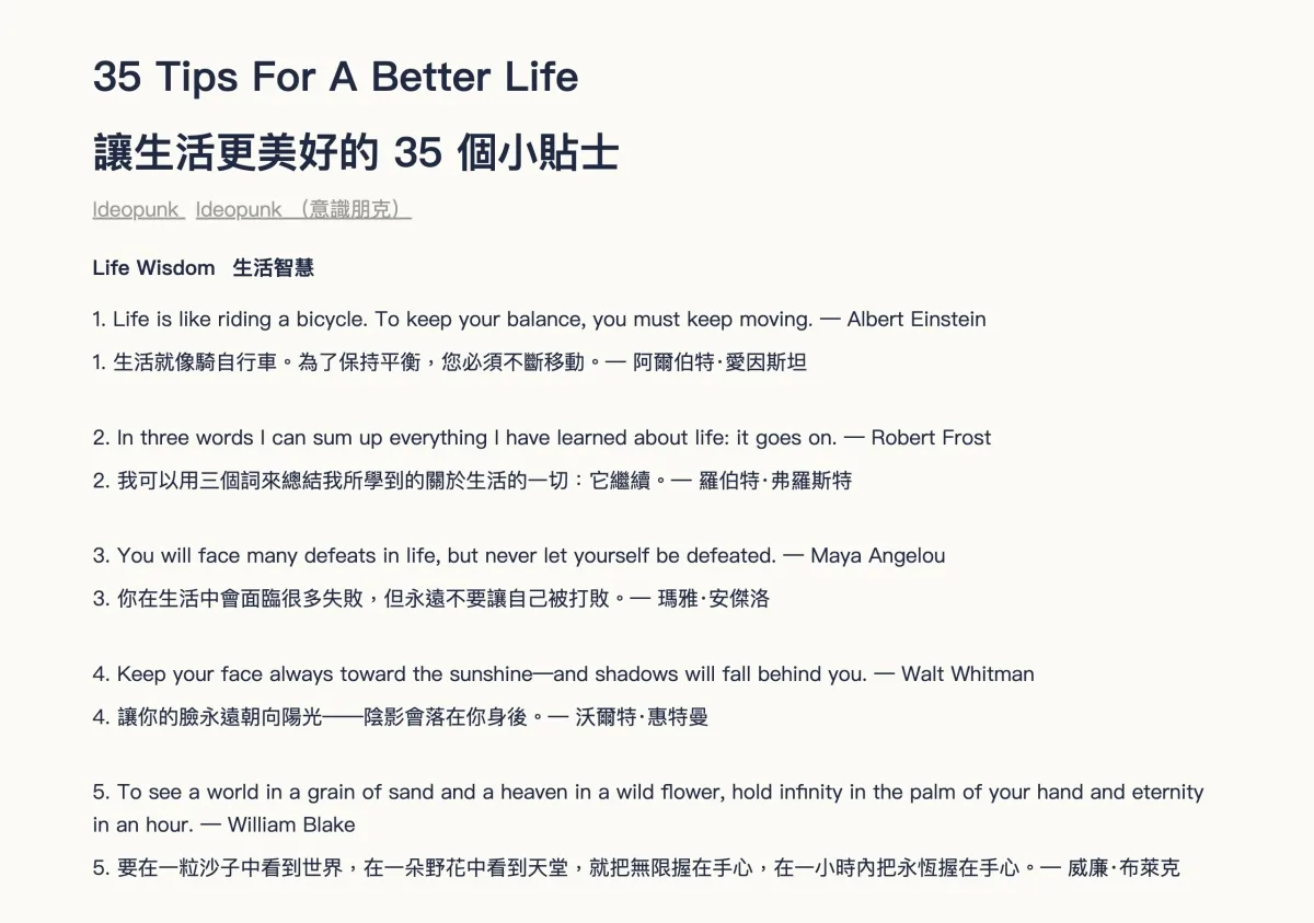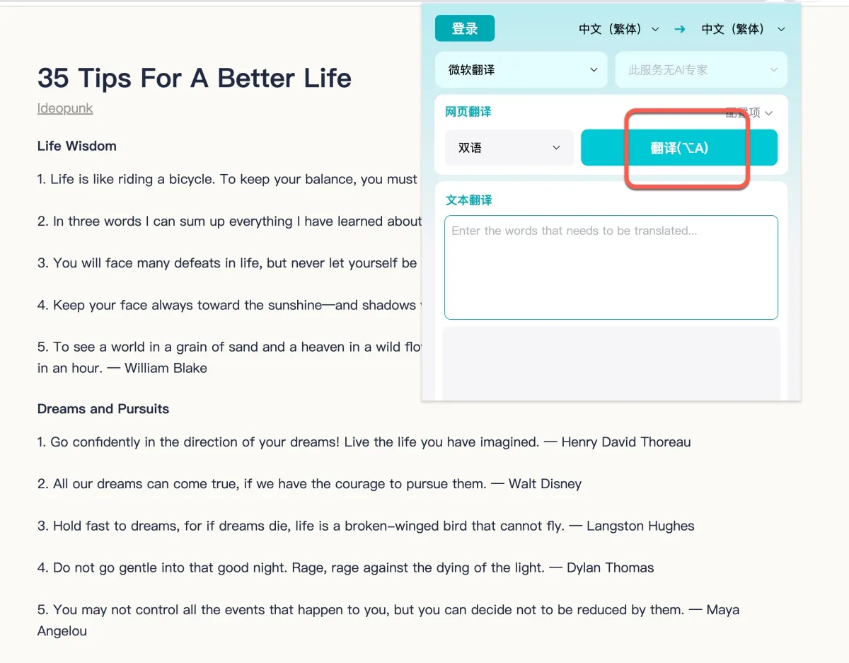 可以看到內容就直接以原文加譯文的方式顯示在網頁上了,是不是看起來很方便。