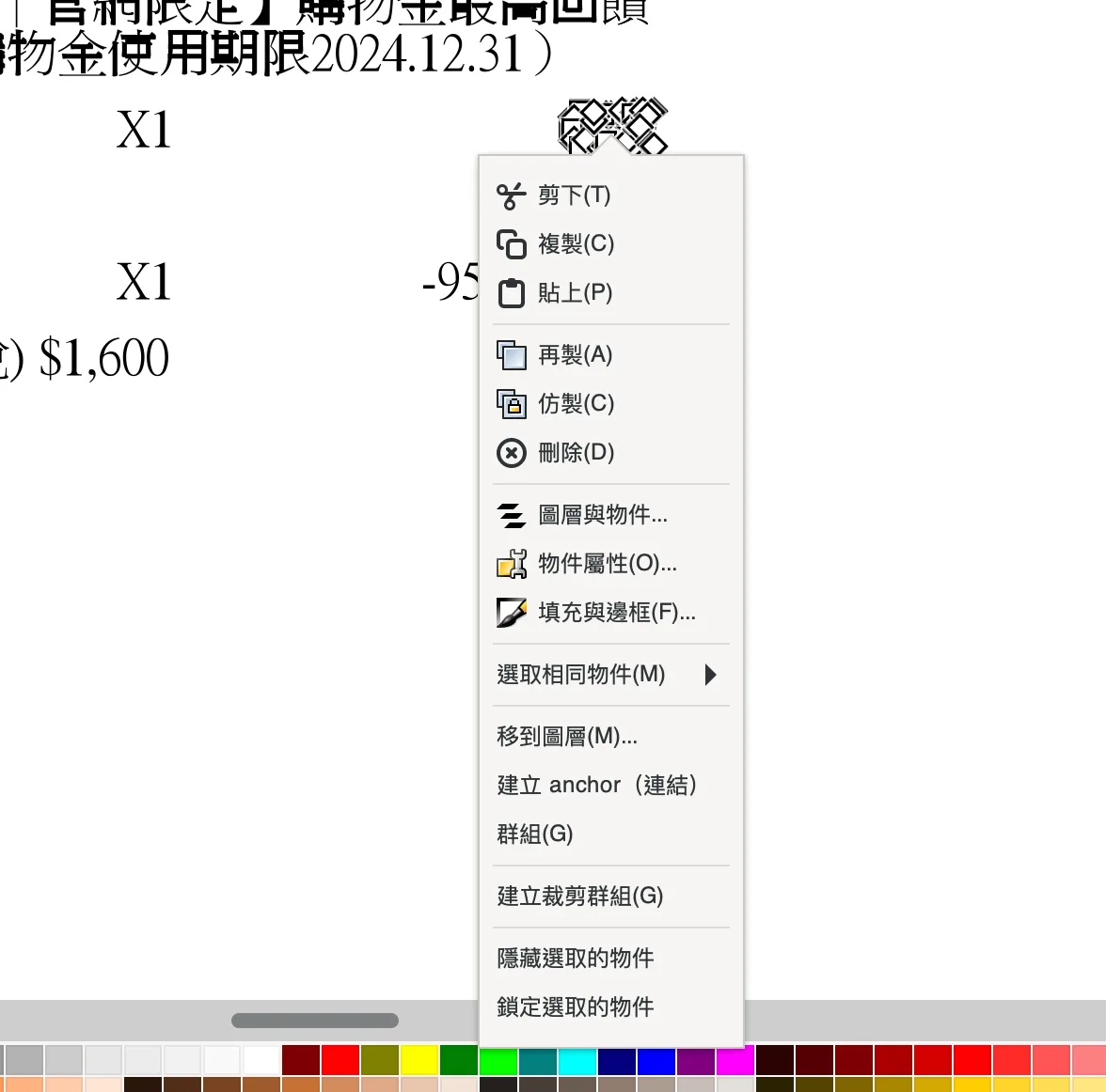 比如我將原本那文字區塊的 0TX 刪除,新增了一個紅字上去。