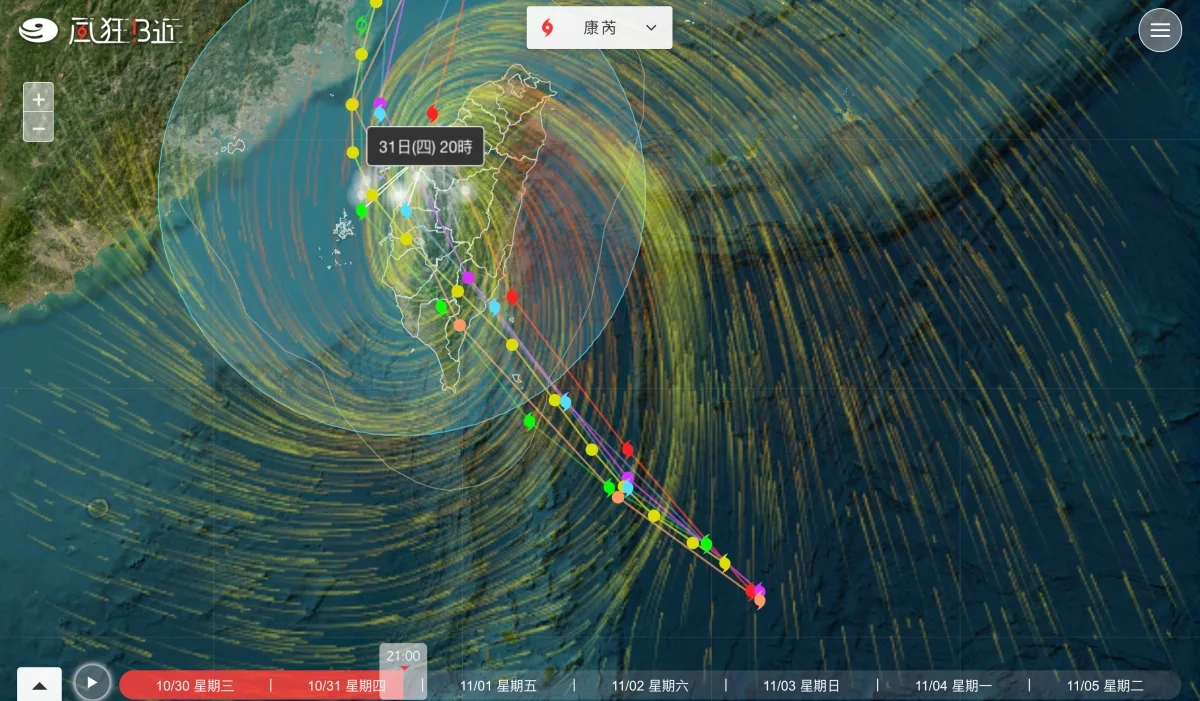 在下方有時間軸可以拉動觀看颱風暴風圈的路徑。