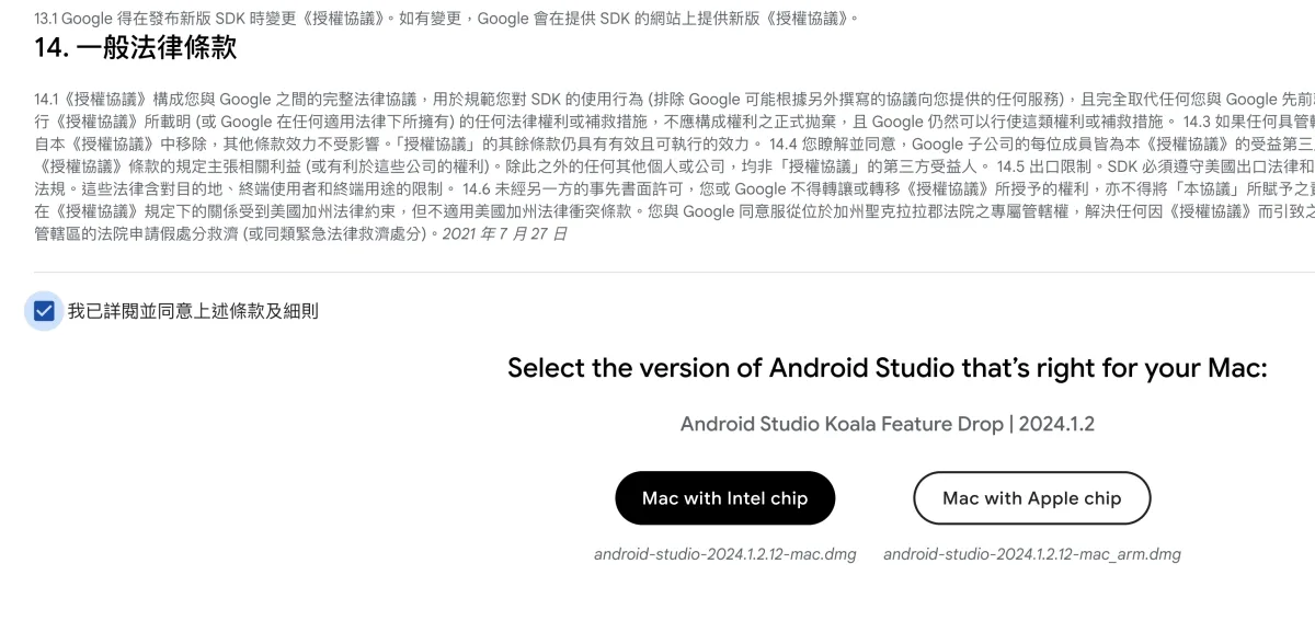 如果是 Mac 的版本會有分 Intel 或 Apple 的處理器,別選錯了。