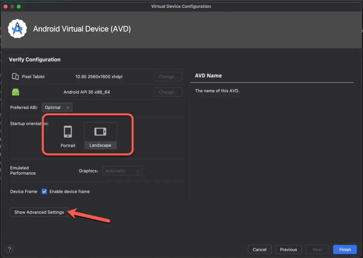 接下來可以設定設備的基本參數,比如預設開啟後是直式或橫式,更多的硬體參數可以點擊「Show Advanced Settings」展開設定。