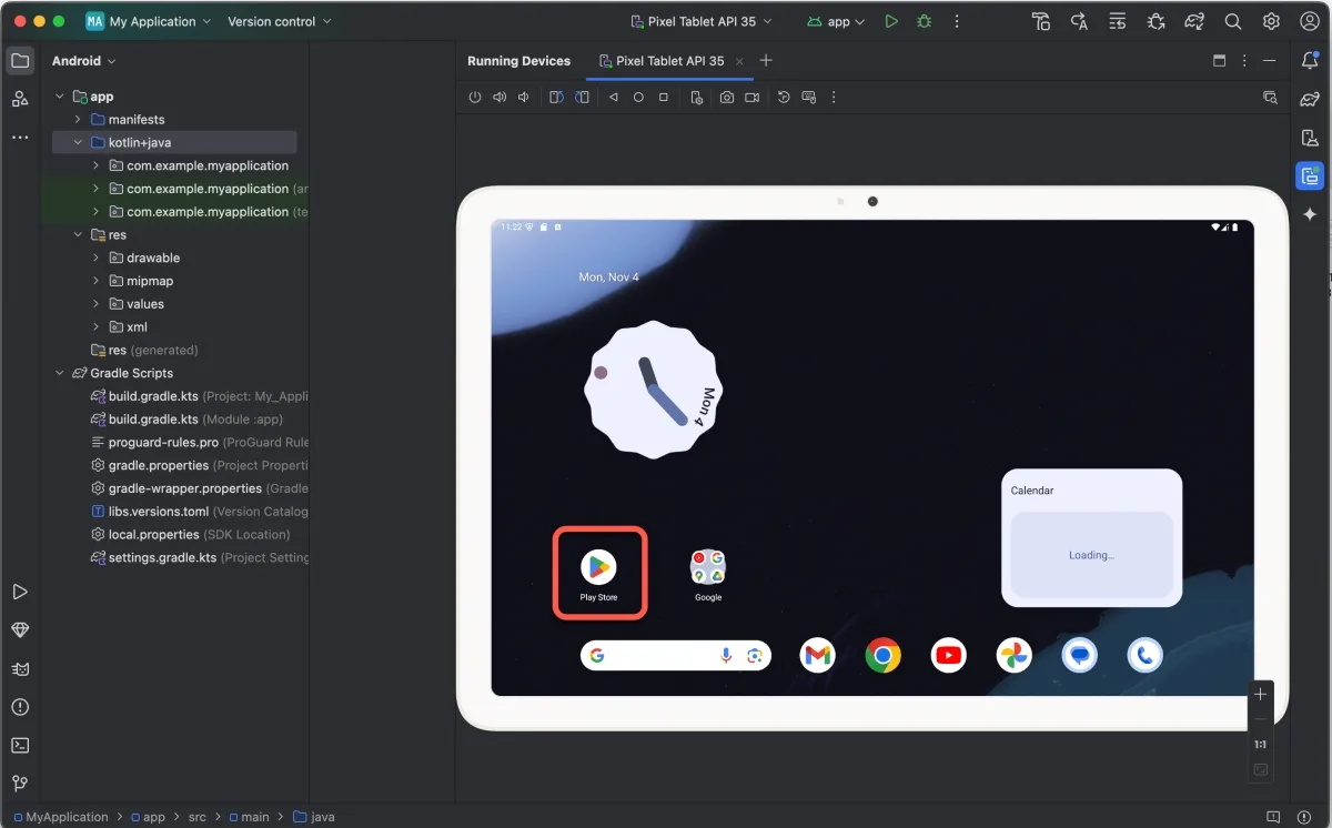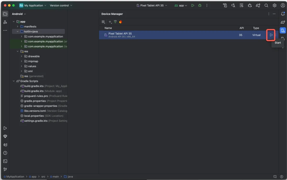 建立完成後就可以在這裡執行 Android 模擬器了。