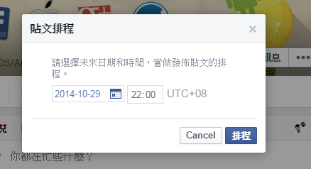 貼文排程的功能相信原本就很多人在使用,不過這次也有一點點小微調,就是時間完全改成手動輸入,先前則是可以手動輸入也有每隔 5 分鐘的選項。