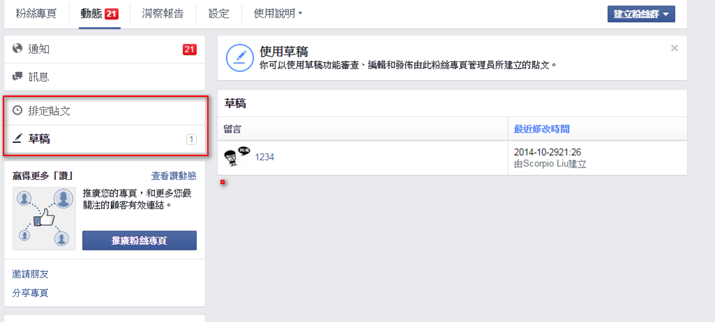 而草稿的部份,跟排定貼文一樣,可以在後面再進入編輯,相當的方便。