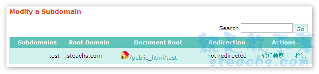 test,後面選擇steachs.com(因為丫湯不只綁一個域名,