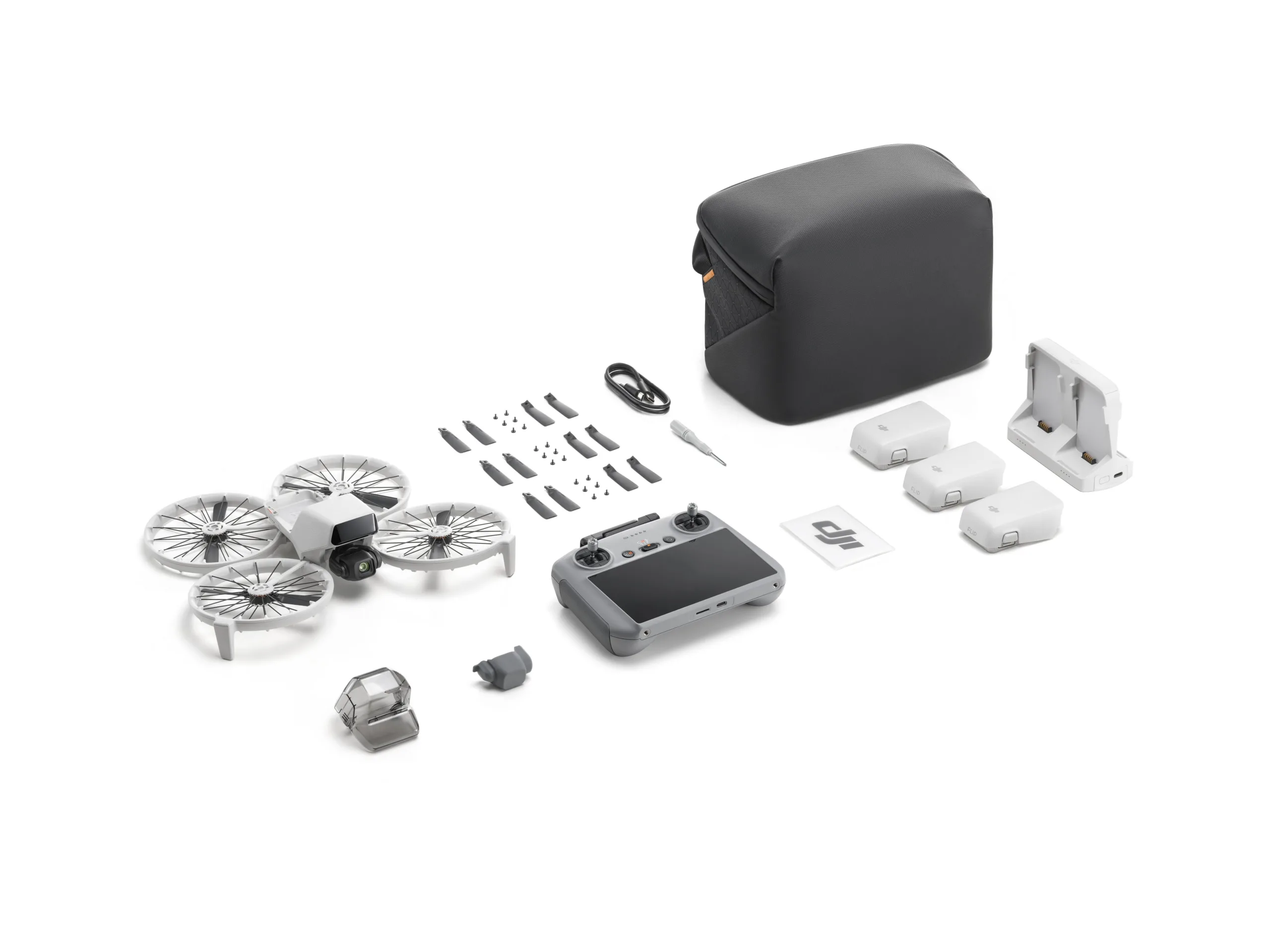 DJI Flip 是DJI 首款自帶可折疊全包圍槳葉保護罩的空拍機。保護罩所採用的碳纖維支撐結構,在同等剛度下重量僅為傳統工程塑膠材質(PC)的六十分之一,輕盈耐用。輕於 249 公克的DJI Flip,重量相當於一個蘋果,在大部分國家/地區無需參與培訓或測驗即可起飛;手掌大小,隨手裝進背包,輕裝出行,隨心創作。