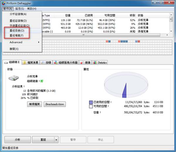 其它也可以針對某個目錄或檔案進行重組,主要可能就檔案比較多的資料夾,或是容量較大的單一檔案。