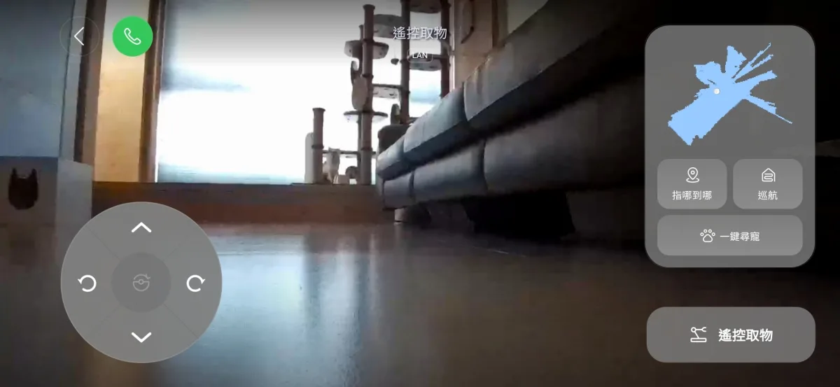 AI 影像即時視訊通話,出門在外隨時可以透過 App 操控掃地機,利用視訊通話觀察家中的狀態或是跟寵物互動。