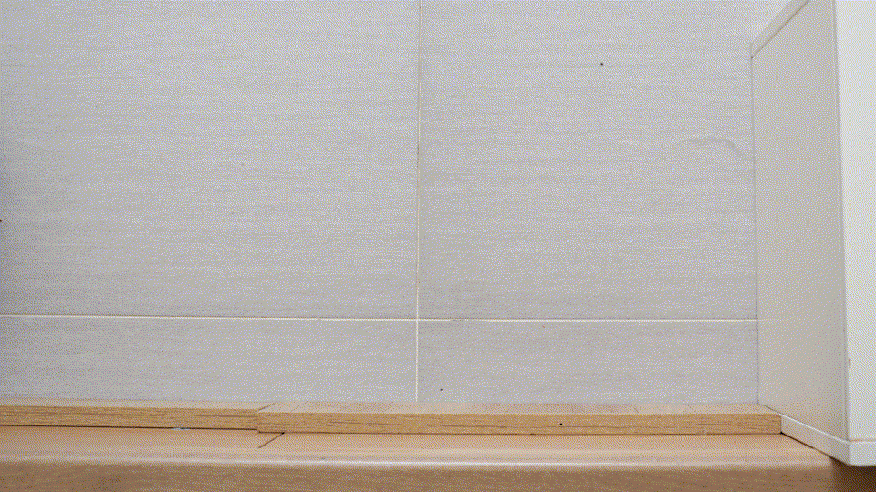 底部的抬升功能還有用在跨越門檻使用,最高可以跨過 2+2 公分的雙門檻,像我測試的這高度,二片加起來都大概 4.5 公分了,一樣沒問題。
