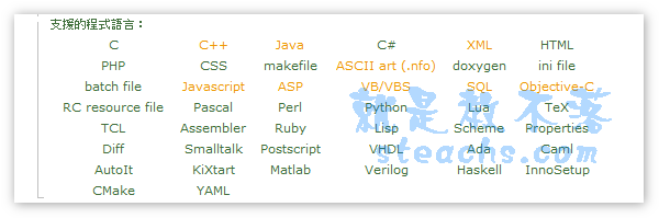 軟體簡介:可支援的程式代碼如下圖,其它相關介紹可以在官網慢慢看哦~