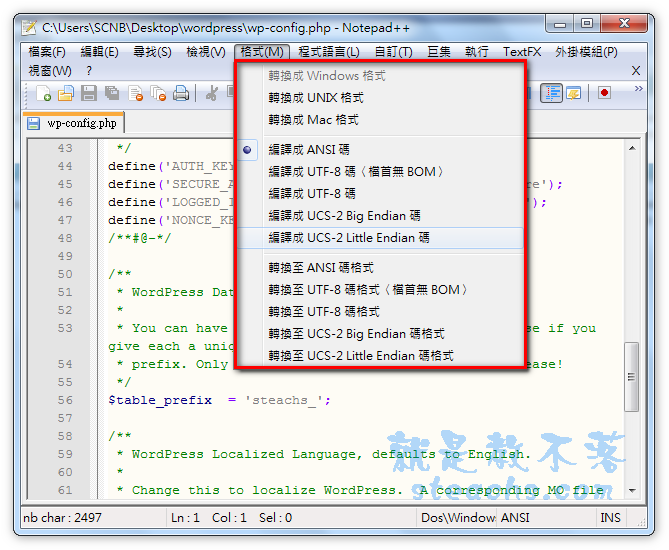 再來看看可以存檔的格式~有這麼多呢,想想我們內建的記事本,頂多是ANSI和UTF8吧